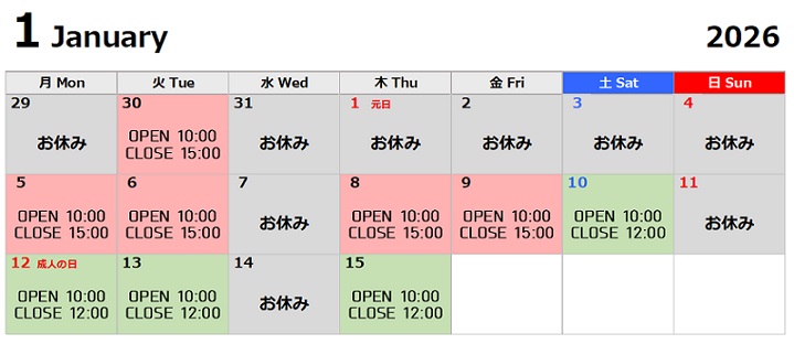| 開催時間 | 10:00〜12:00 / 15:00 |