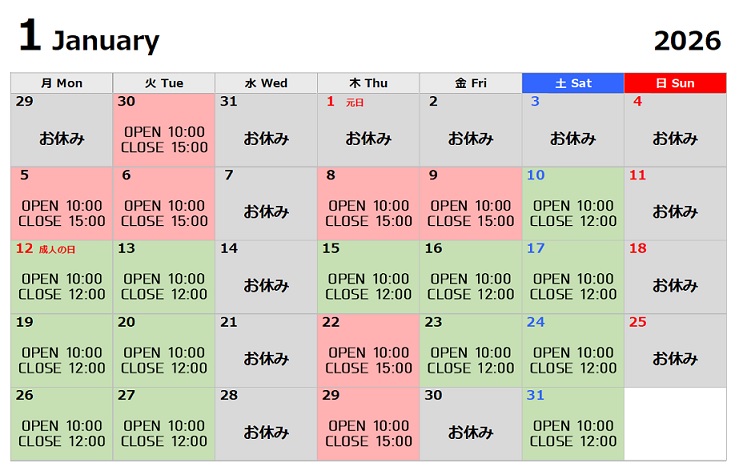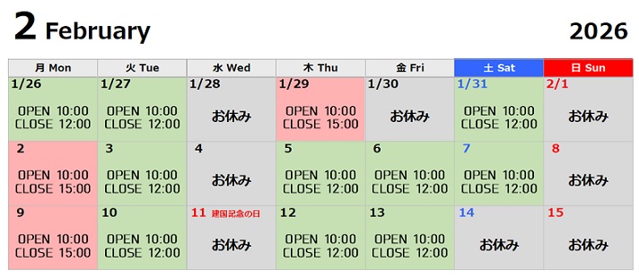 | 開催日 | 営業カレンダーをご覧ください |