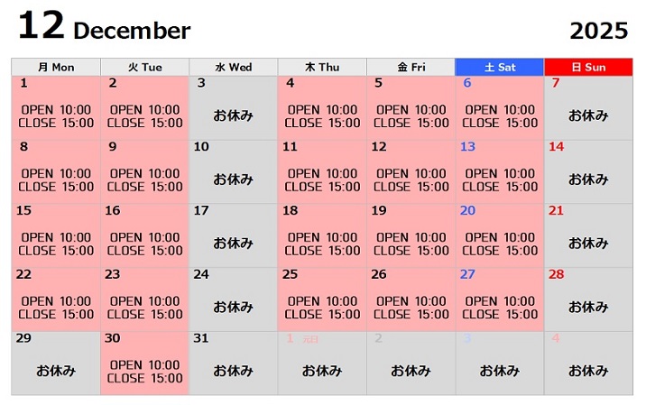 | 開催時間 | 10:00〜12:00 / 15:00 |